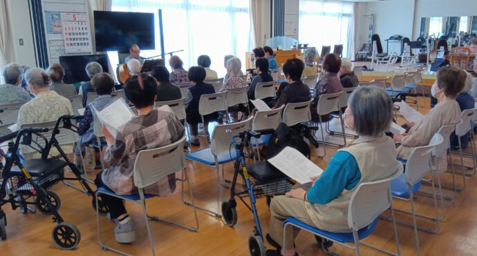 ボランティアの池邉さんの甘い歌声と一緒に皆さんで歌います❤