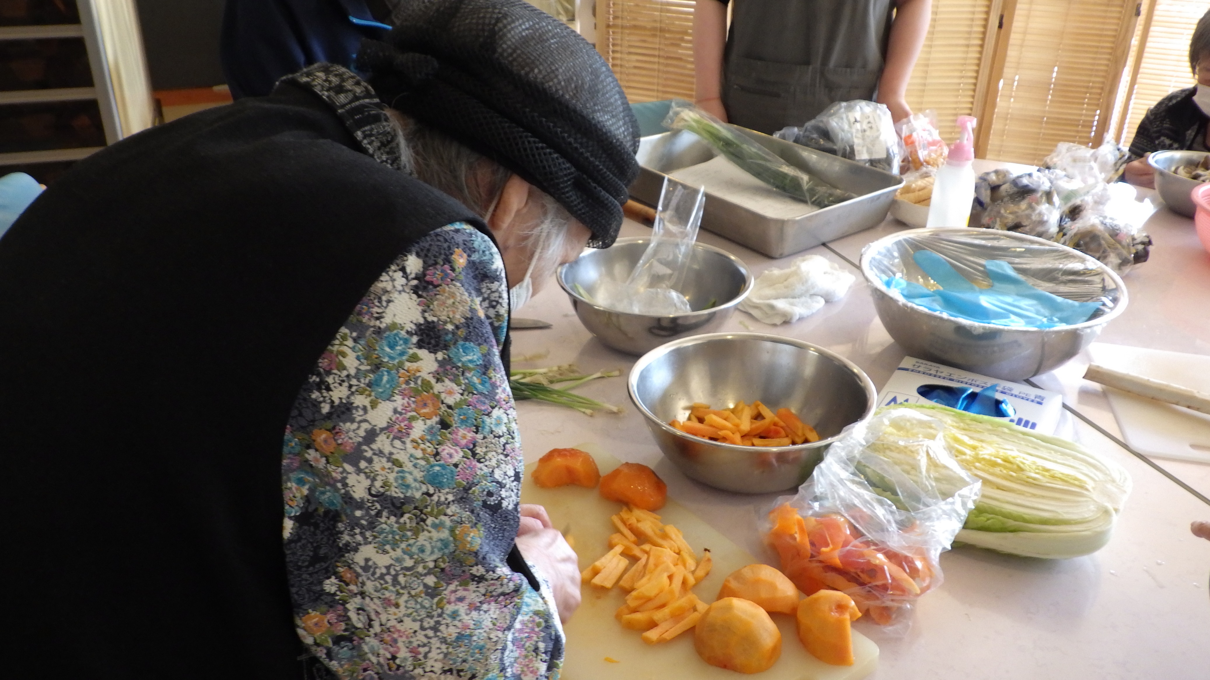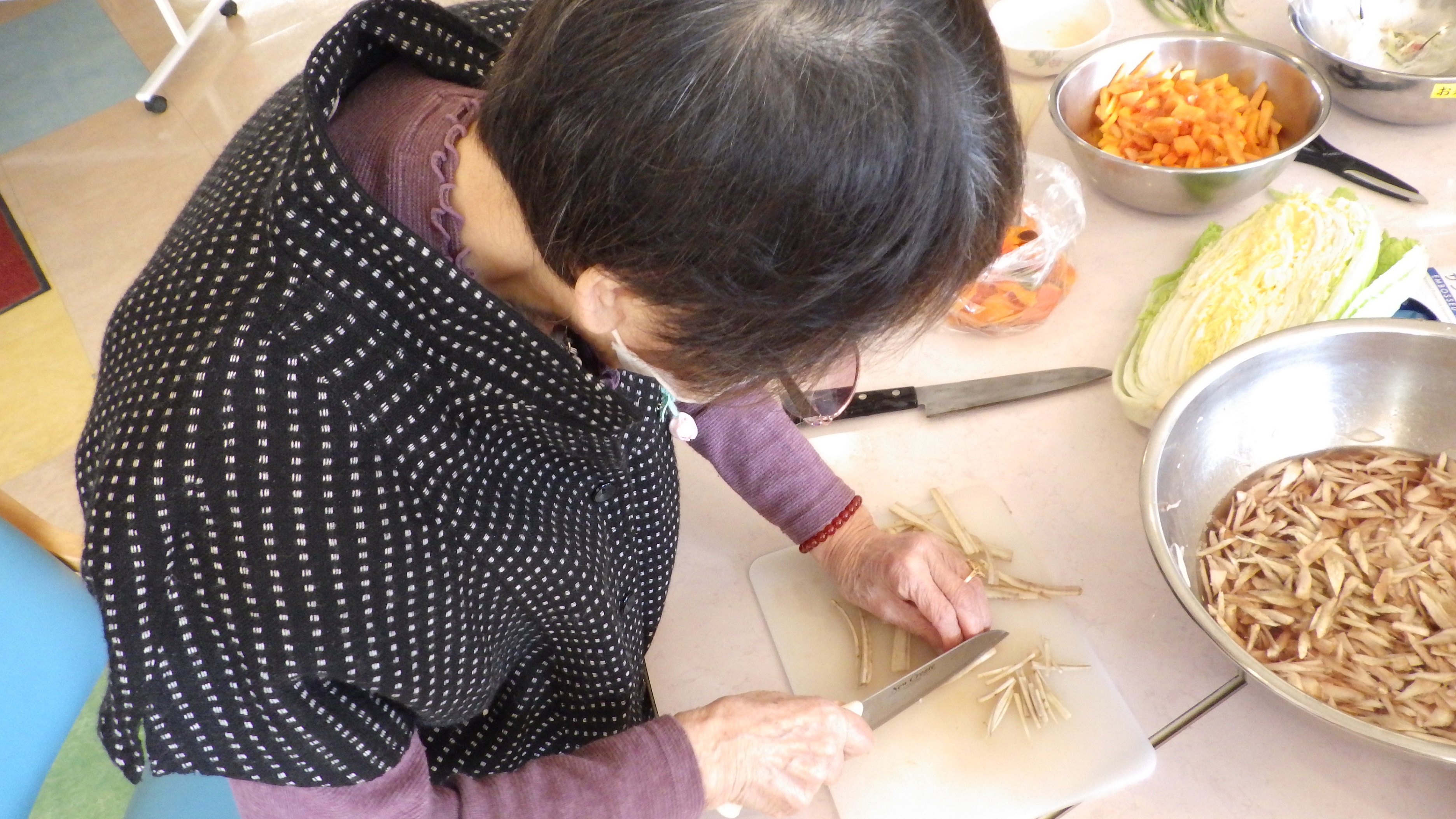 「お料理をする事は好きですか?」の問いかけに、皆様「料理は嫌い!」とのことでしたが、手際の良さから、昔、料理をたくさん作っていた事が伝わってきました。