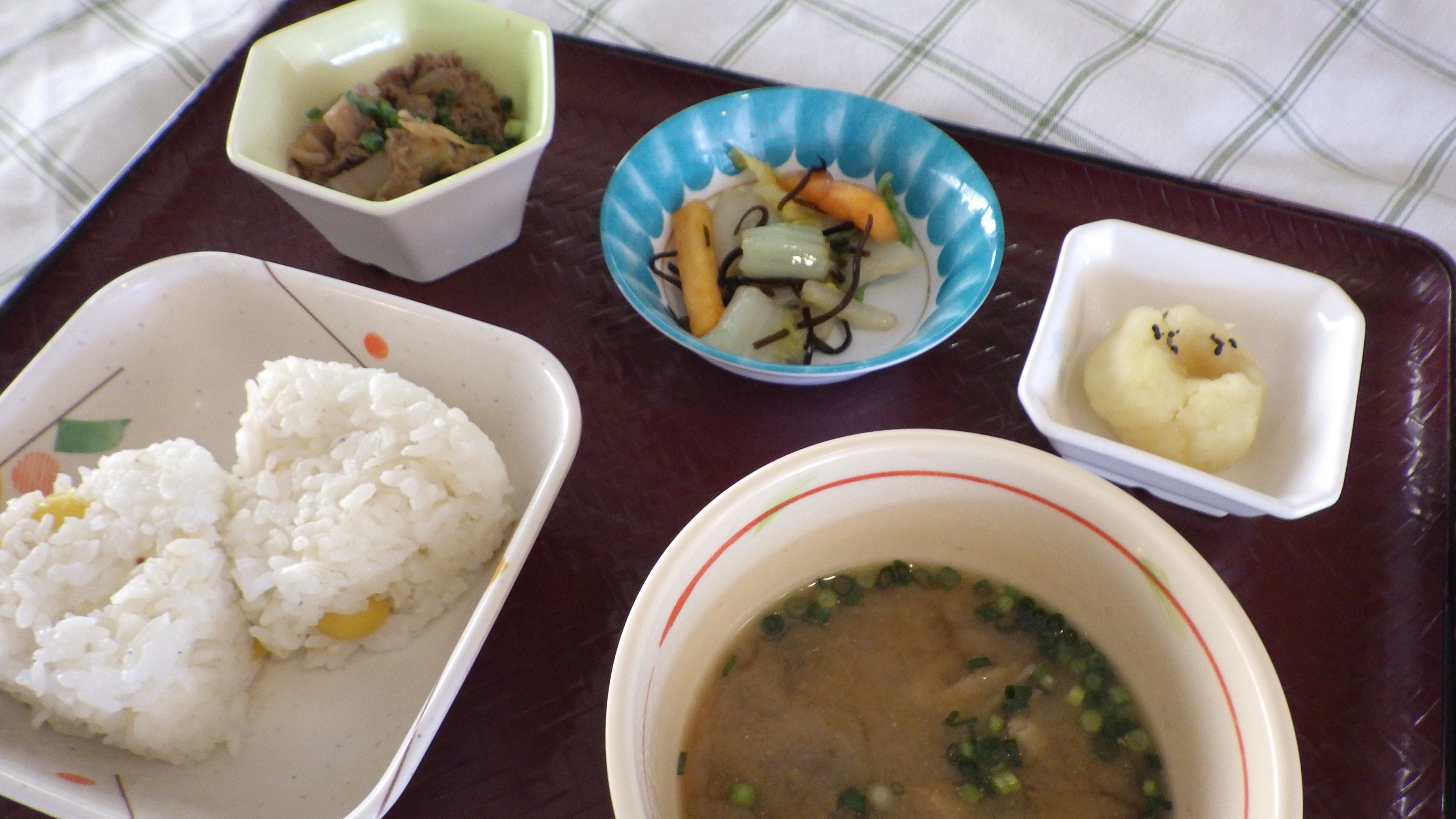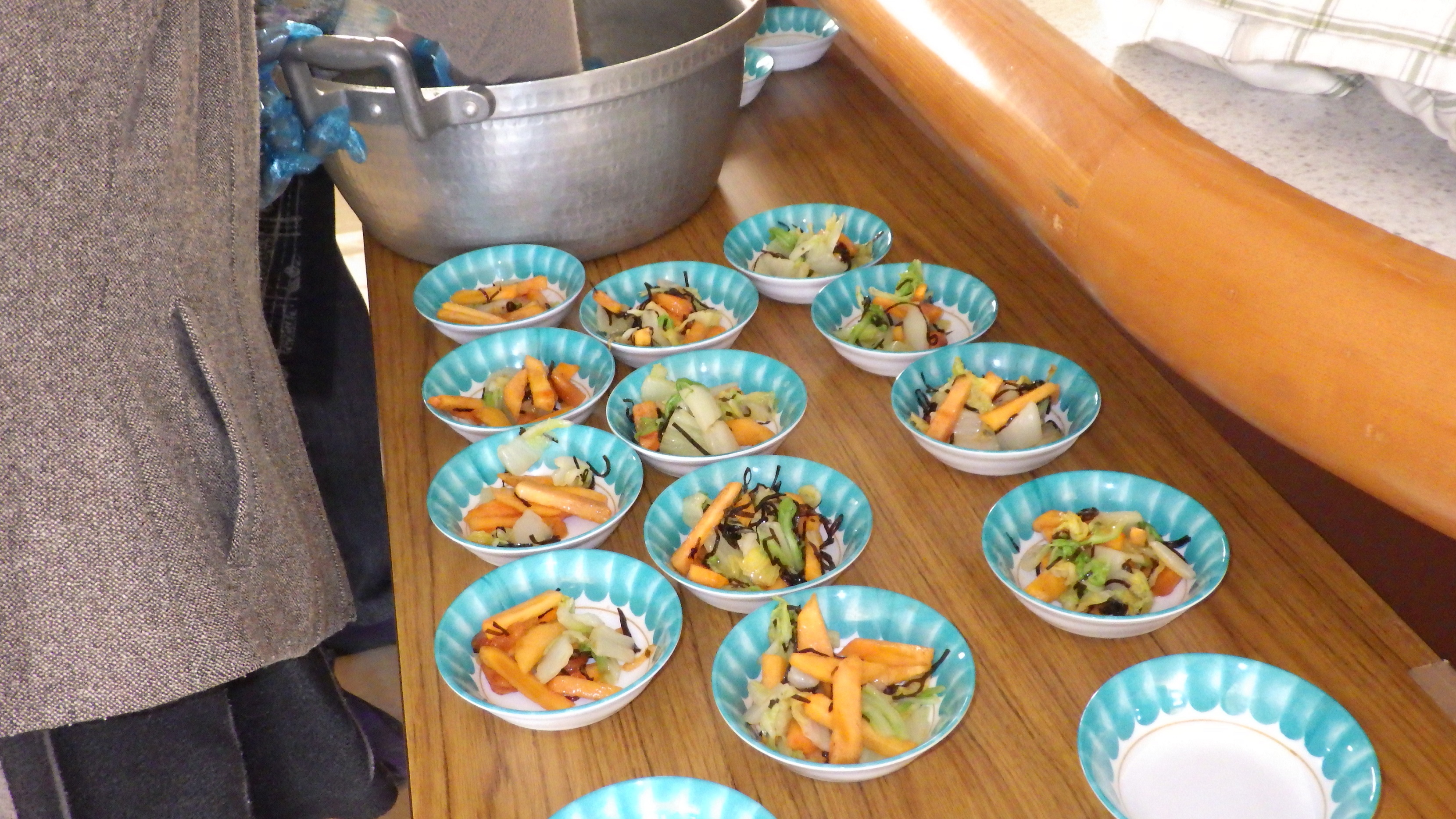 作業工程の多いメニューでしたが、6名の利用者様と配膳まで行ないました。