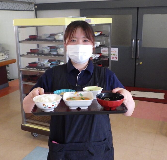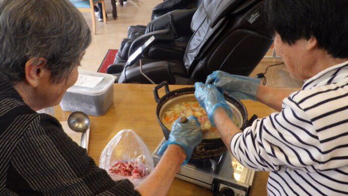 「味付けをしてもらえますか」とお願いすると、「私は誰からも料理をおそわった事がないから自我流だけど・・・」と少し心配されていましたが、利用者様と職員で味見をしながら楽しく調理できました。