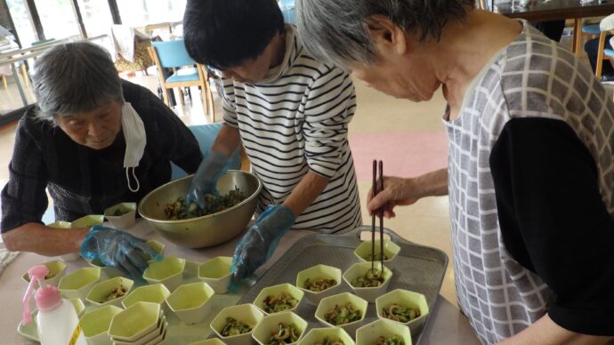 参加された利用者様に、食材を切ってもらい、味付けもしていただきました。