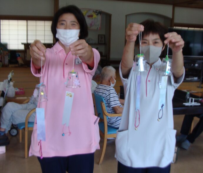 先日、工作で風鈴づくりをしました。プラスチックコップと鈴で作りました。