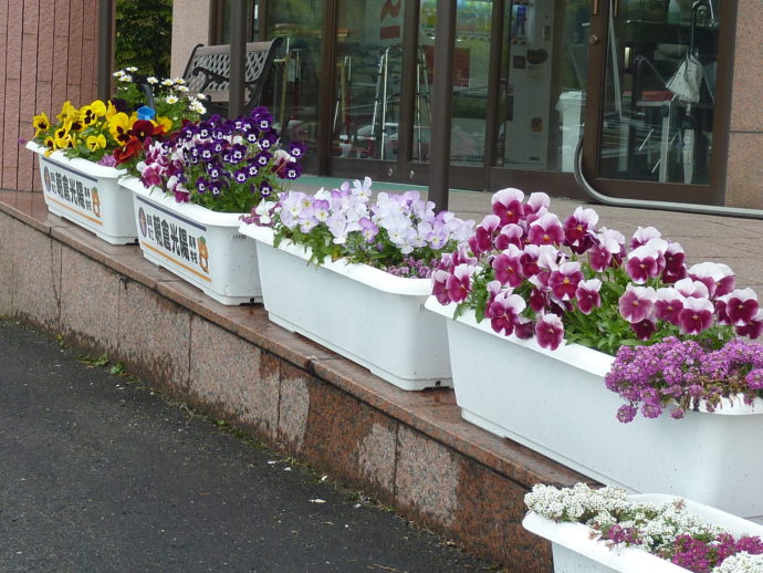 玄関のほか、国道からラパスへ続く通称「あじさいロード」にはビオラ、
