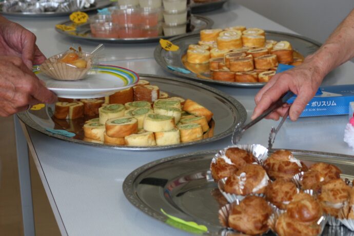 今回はスイーツビュッフェ(大福、ロールケーキ、ゼリー、シュークリーム)です。
