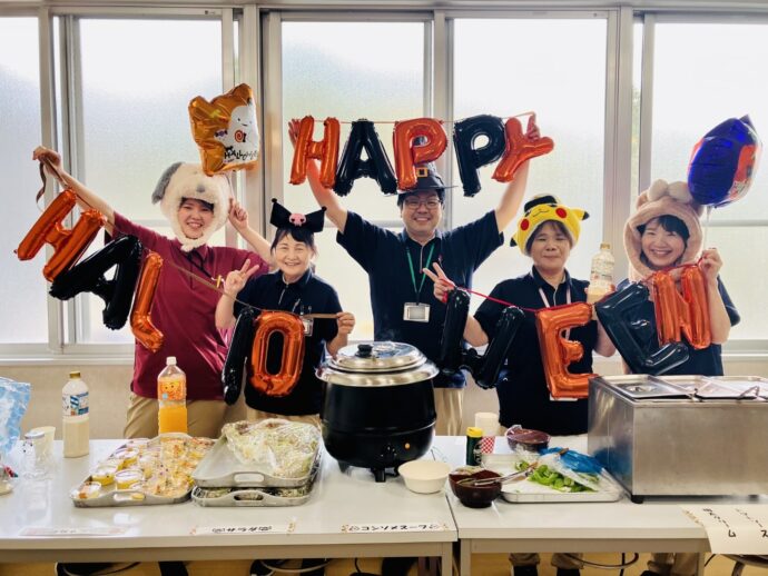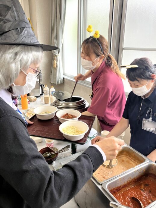お化け大量発生の原因は、ラ・パス厨房職員がおもてなしをしてくれる福利厚生イベント「ほっと一息の日」。ハロウィンに合わせて実施された今回は、厨房手作りの「ソースを選べるパスタ」が職員にふるまわれました。