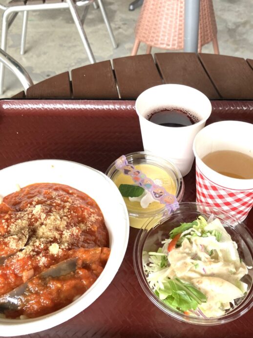 サラダ、スープもついて豪華なお昼ごはんになりました。また、仮装をするとデザートがおまけされるという、うれしい企画も。