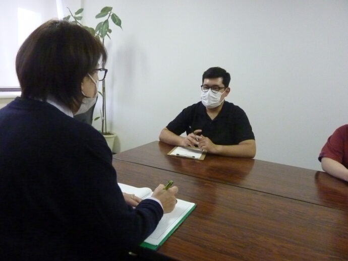 最後は当ラ・パス施設長の二宮と面談。外国人職員の受け入れを始めたころの話しや現状をお聞きいただきました。