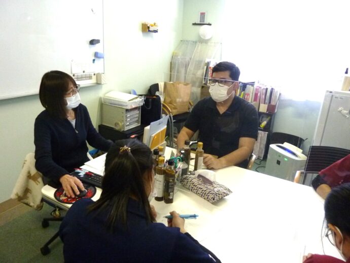 外国人職員は勤務時間の一部をつかい、日本語の勉強を行っています。その現場も見学していただきました。