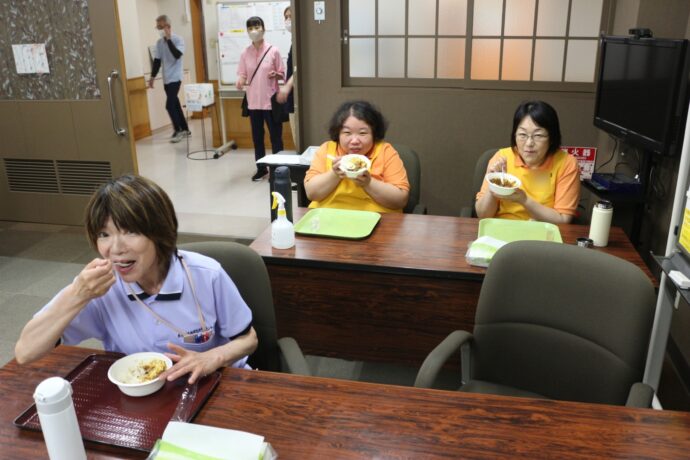 ほんのりと辛いカレーは夏にぴったり。職員からは「おいしかった!」「キーマはあまり食べないから珍しかった」といった声が聞かれましたよ。