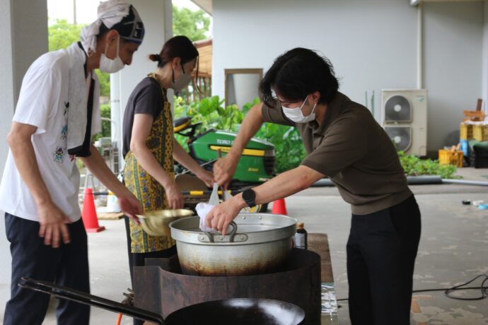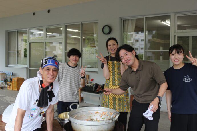 ▲統括本部の職員。協力してキーマカレーをつくってくれました。
