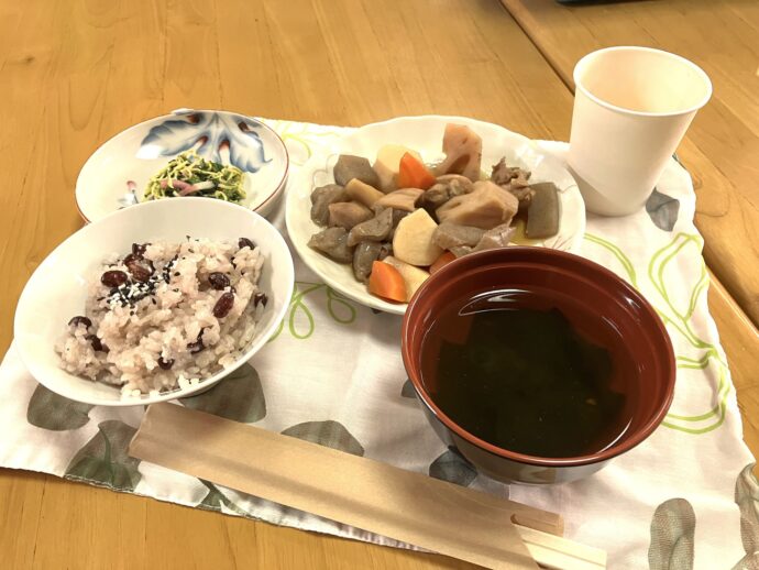 ご飯はお赤飯。お汁もついて、立派なお膳のできあがり!