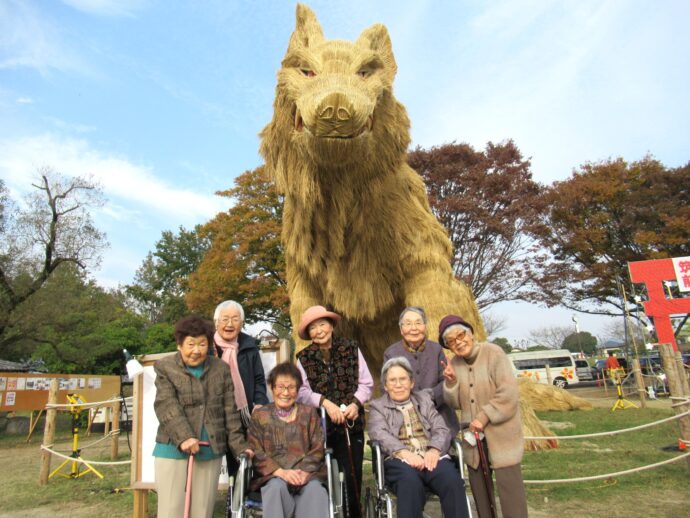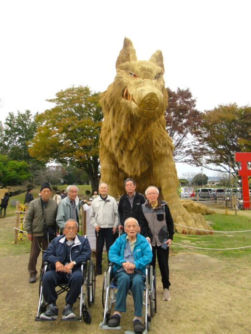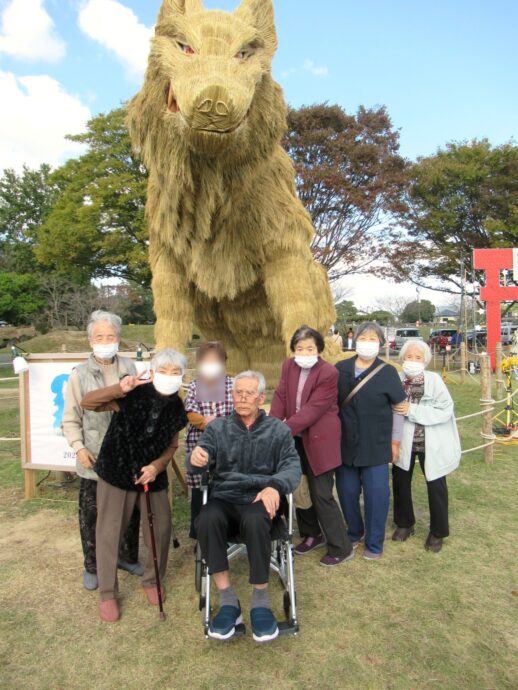 #介護老人保健施設ラパス #デイケア ではいろんなイベントを実施しています。11月は筑前町の名物、わらかがしの見学に行きました!今年はヤマイヌ。くわっと牙を剥く顔!利用者様は「すごい迫力」「来年も見に来なきゃ」と言っていましたよ。角度によってはヤマイヌが笑っているようにも見えますね!