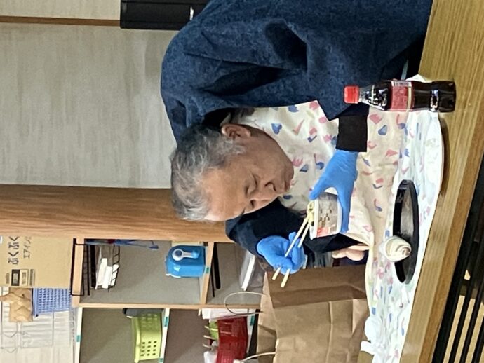 アツアツのうどんを鼻にこすりつけられて悶絶する職員の様子に、利用者様は大爆笑していらっしゃいましたよ!