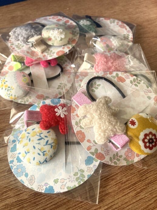 皆さん真剣なまなざしで小さな髪飾りをつくってくれました。