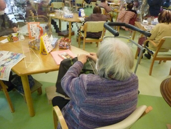先日デイケアで、新聞紙ちぎりのレクリエーションが行われました。