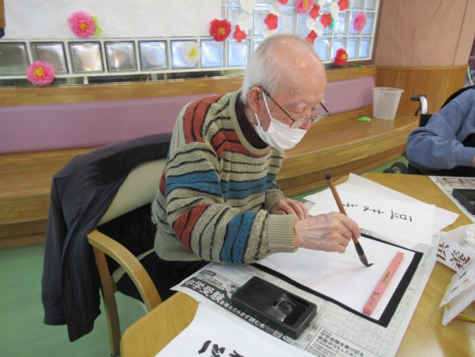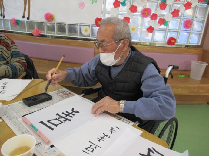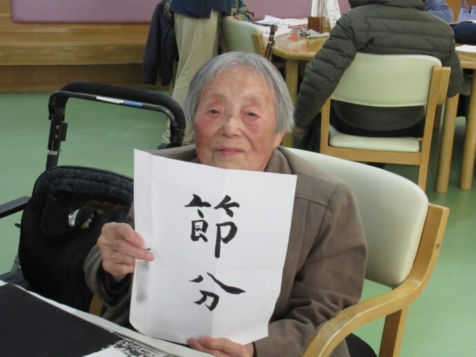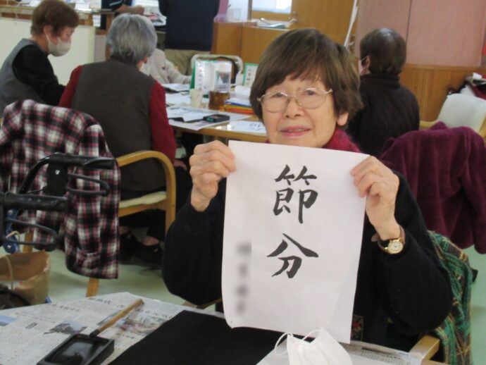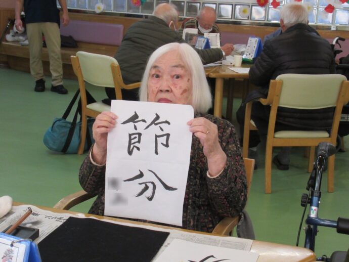 【ラ・パス】デイケアで節分の習字