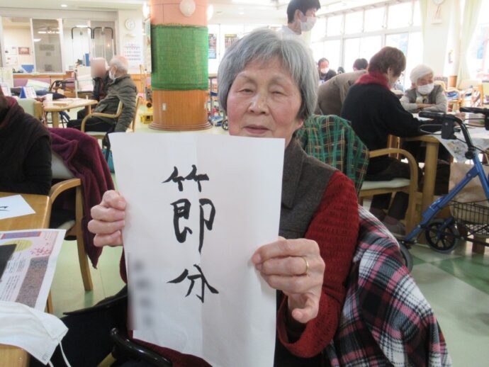 #介護老人保健施設ラパス #デイケア で、節分の習字をしました!皆さん、大筆で力強く書いてくださいました。3日の昼ごはんには恵方巻を召し上がってもらいましたよ。今年も一年、元気に過ごせますように!