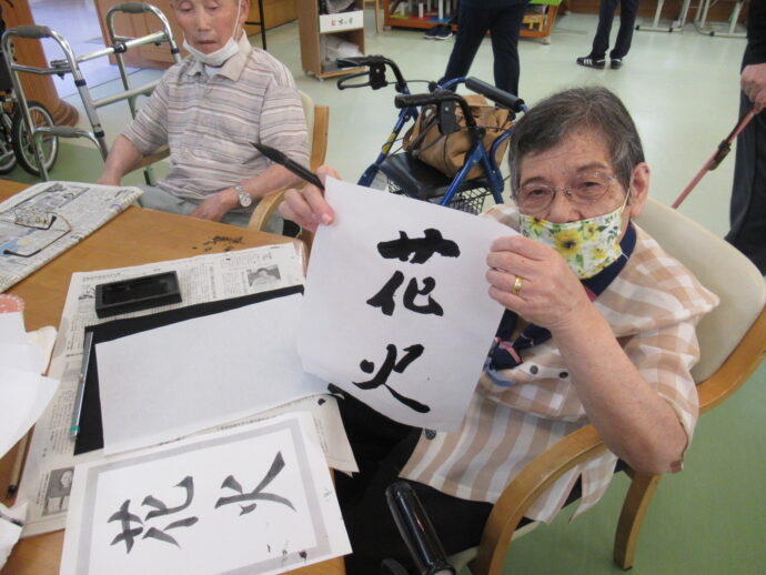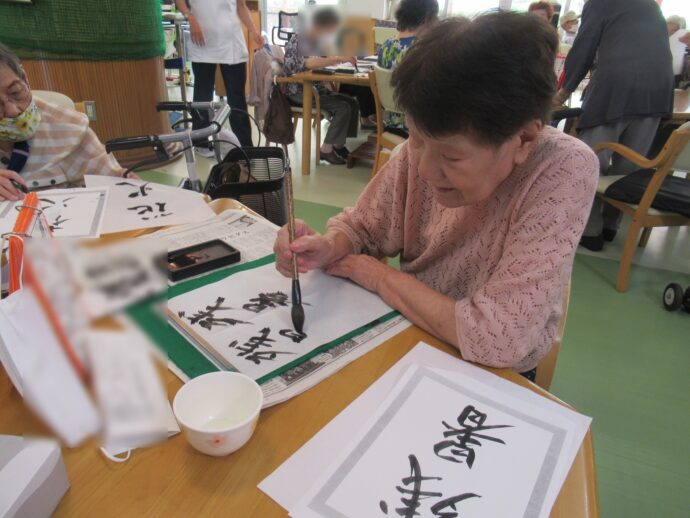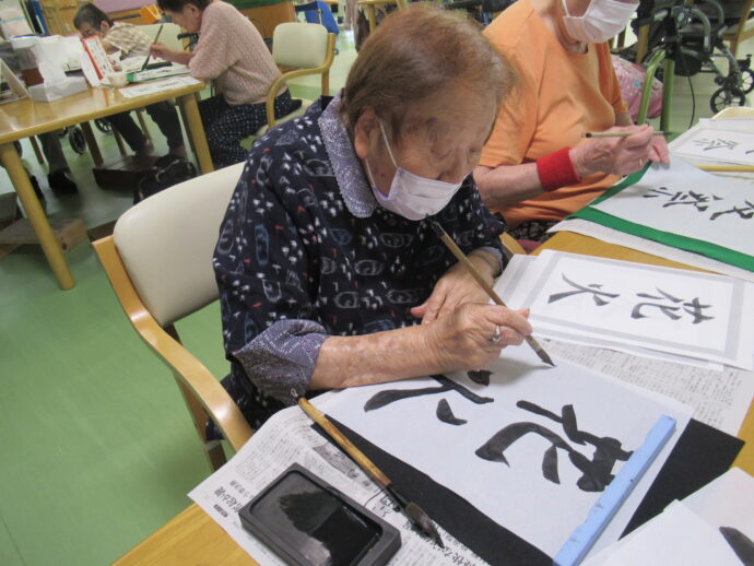 この日は夏の思い出を習字で書きました。皆さん、力強い立派な字を書いていらっしゃいました!