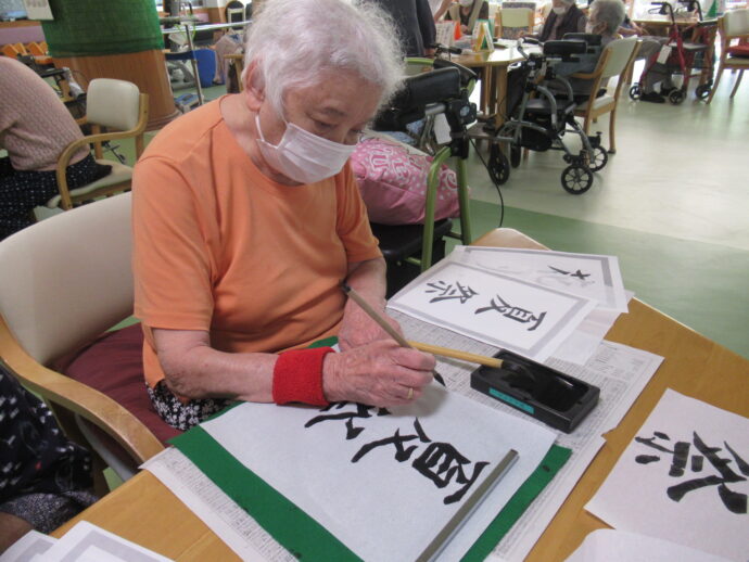 【ラ・パス】デイケアで節分の習字