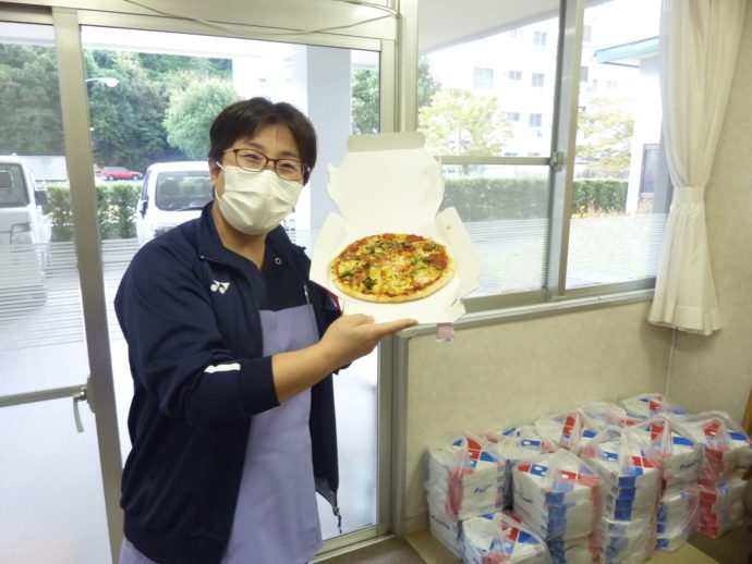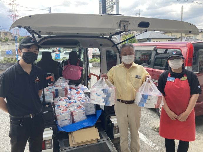 ドミノ・ピザ様では2020年4月からコロナ禍における地域貢献活動として「無料ピザで地域支援」を行っていらっしゃいます。これは、高齢者施設など、社会福祉の担い手に対して、ピザを無料で提供してくださるというものです。2日間でなんと160枚(!)のピザを提供していただきました。