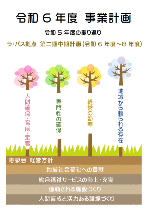 寿泉会経営方針を基本として4つの花が咲いていくように日々、言葉という栄養をかけながら職員がやりがいをもって楽しく仕事ができるラ・パスにしていきたいと思っています。
