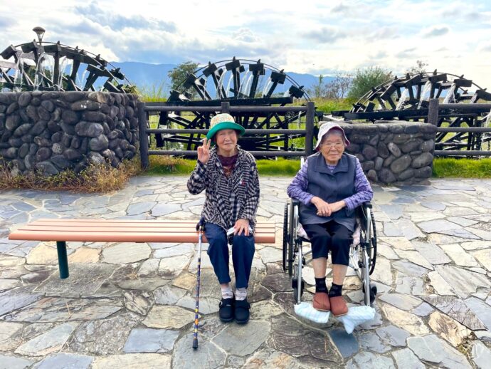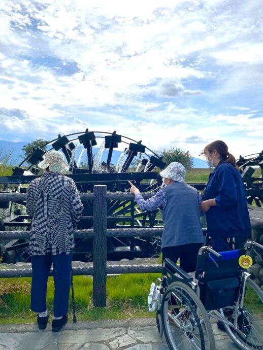 #介護老人保健施設ラパス 入所部です。秋!入所者の皆様と朝倉の三連水車までドライブに行きました。好天に恵まれて気持ちのいい一日になりましたよ。アイスもおいしかった! #ドライブ #わくわく #朝倉 #介護老人保健施設 #ラパス介護 #介護 #朝倉三連水車