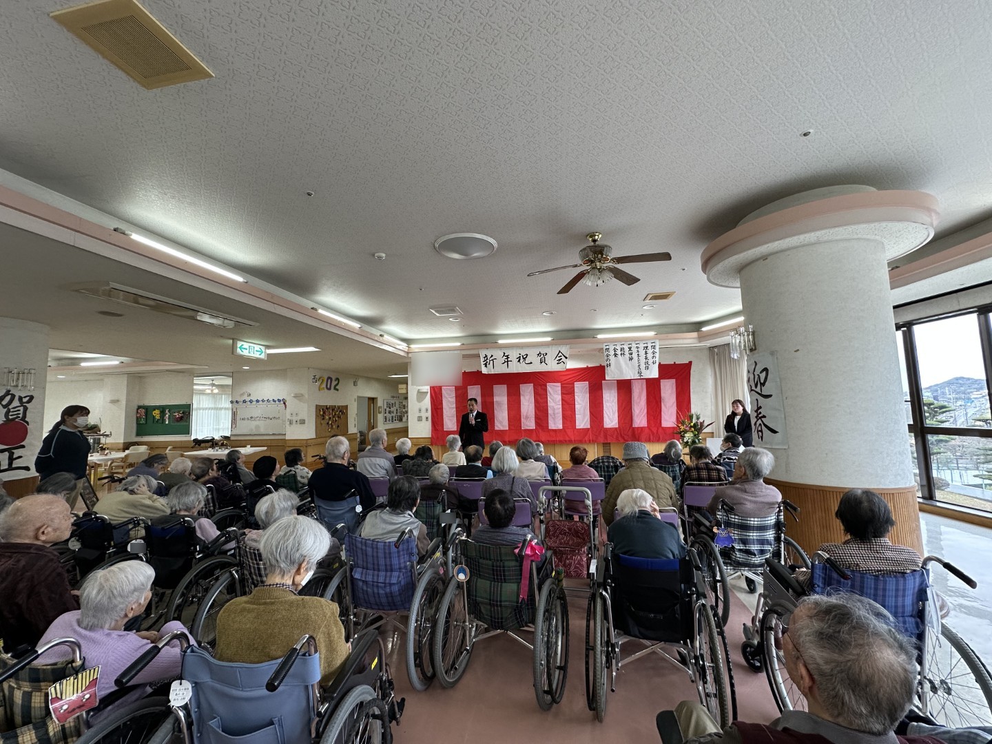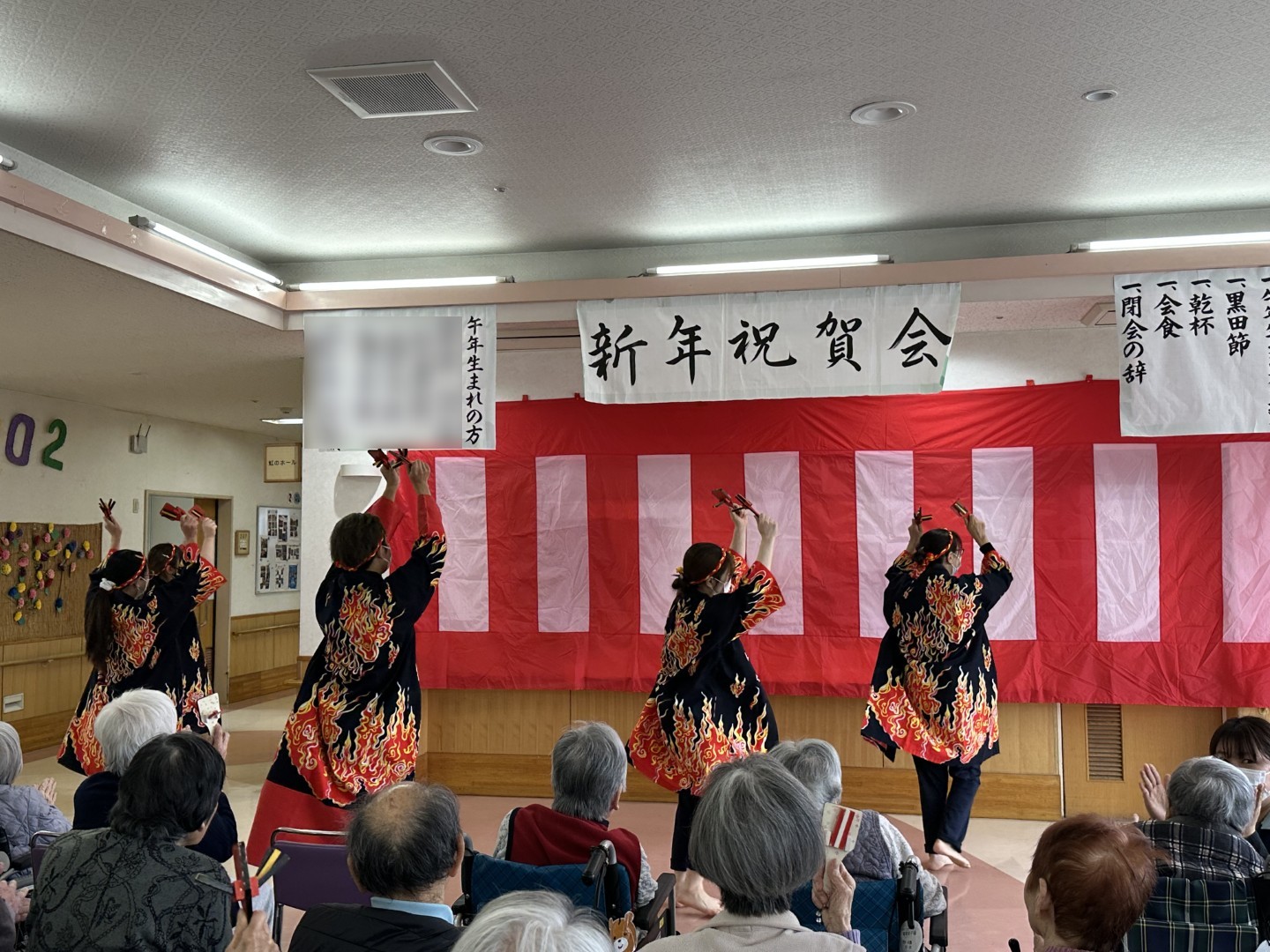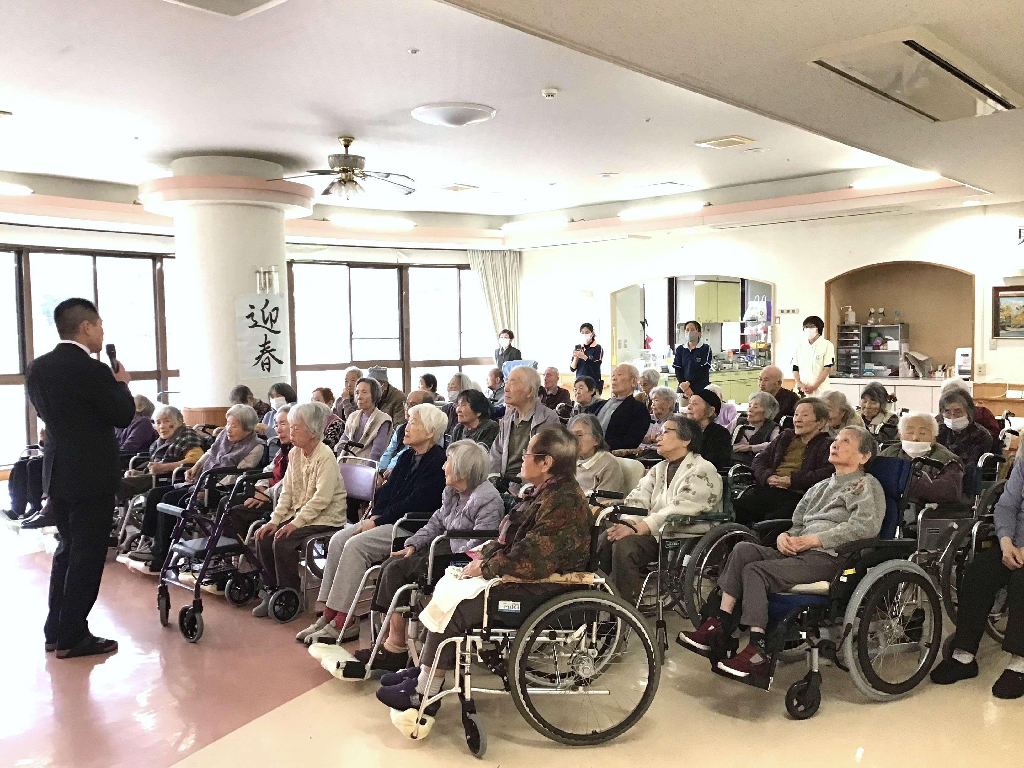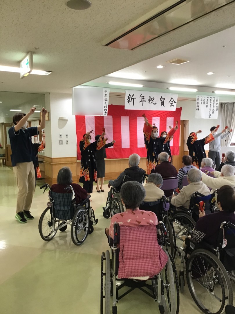あけましておめでとうございます。 #介護老人保健施設ラパス 入所部では1月1日、新年会を実施しました。理事長・田熊が入所利用者の皆様へご挨拶さしあげたあと、毎年恒例の黒田節の踊りを披露。乾杯と会食をお楽しみいただきました。皆様と元気に新年を迎えることができて、本当にうれしいです。今年も一年、よろしくお願いします!