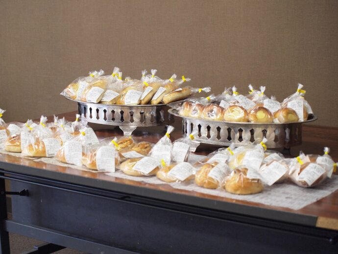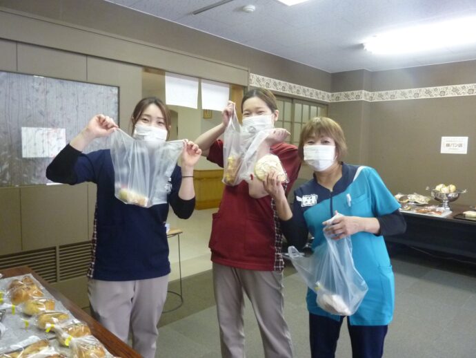 職員に好きなパンを3つ選んでもらい、持ち帰ってもよし、お昼ご飯にするもよし、楽しんでもらいました。
