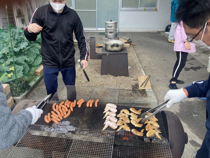 同時に汁(今年はくずかけ)とバーベキューチキンと焼き芋がふるまわれる、職員にとっては楽しい恒例イベントとなっているんです!