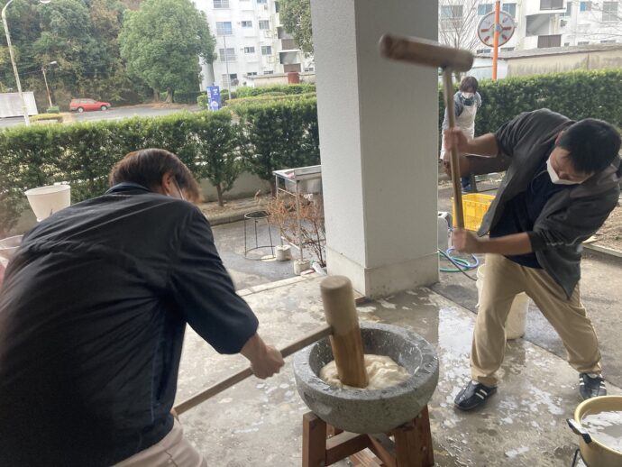 こんにちは!クリスマスが終わり、今年もいよいよ残すところあとわずか。この時期、寿泉会では恒例となっている行事があります。それは・・・餅つきと門松づくりです。