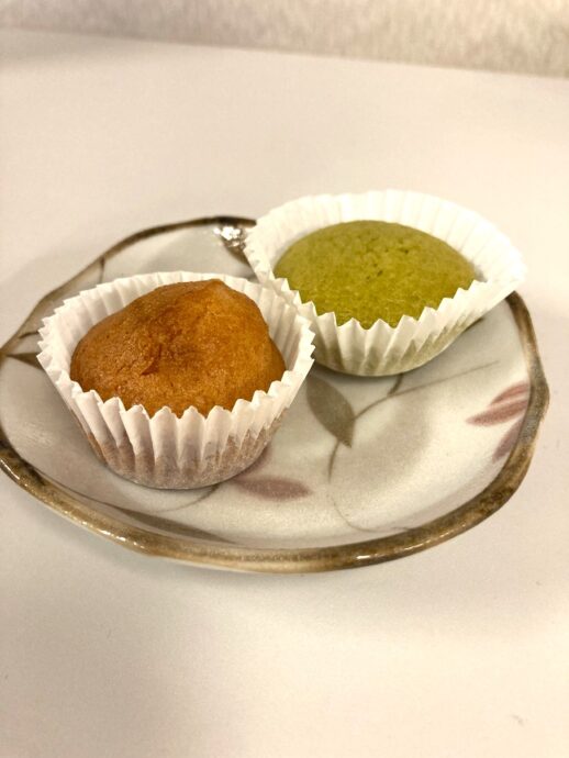 カップケーキ(桜・抹茶)とメロンパンのようなクッキーです。とてもかわいい手づくりスイーツですよ!味は折り紙付きです。