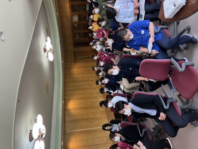 職員会、という言葉は少しおかたいですが、実際は笑いあり、学びありの会なのです。