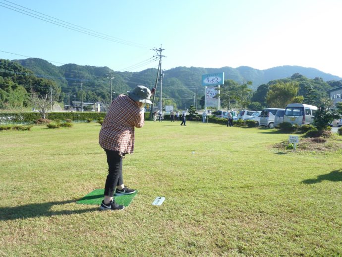 この気持ちのよい暑さの中、ラ・パス敷地内に設けているグランドゴルフ場では熱戦が繰り広げられています。