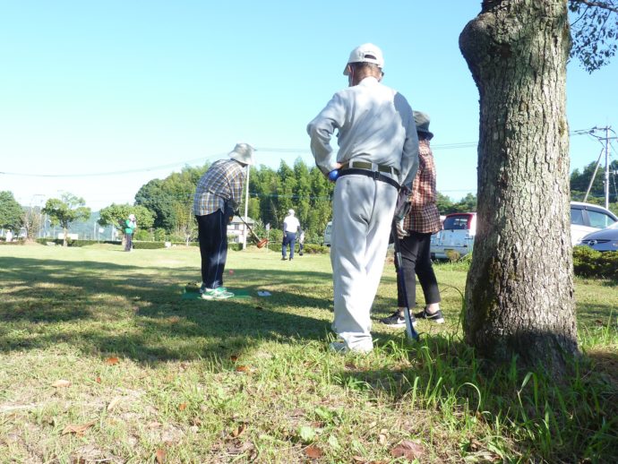 今月から緊急事態宣言解除に伴い、感染対策を十分に施したうえでグランドゴルフを再開しました。