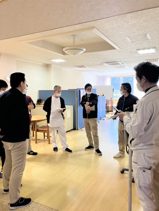 まずは防災委員会で打ち合わせ。このあと、参加職員を集めてオリエンテーションを行いました。