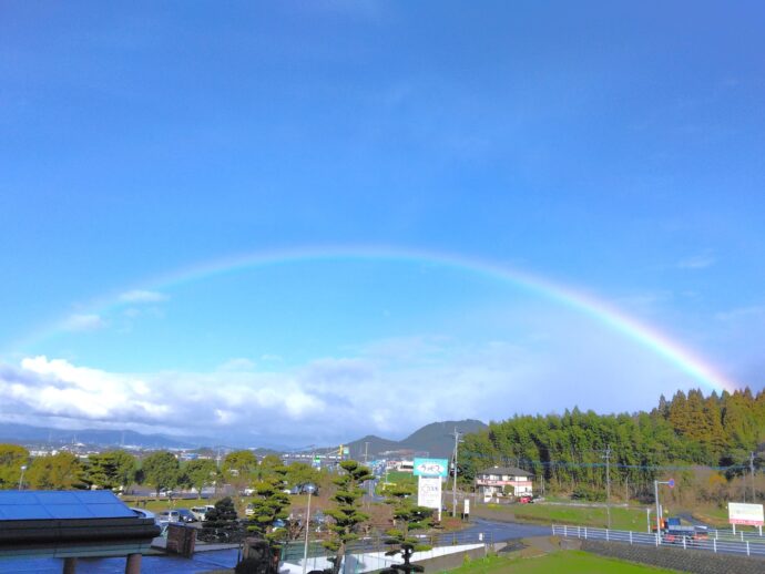 入所者様は口々に「虹がかかっとる!きれいね!」とおっしゃっていました。