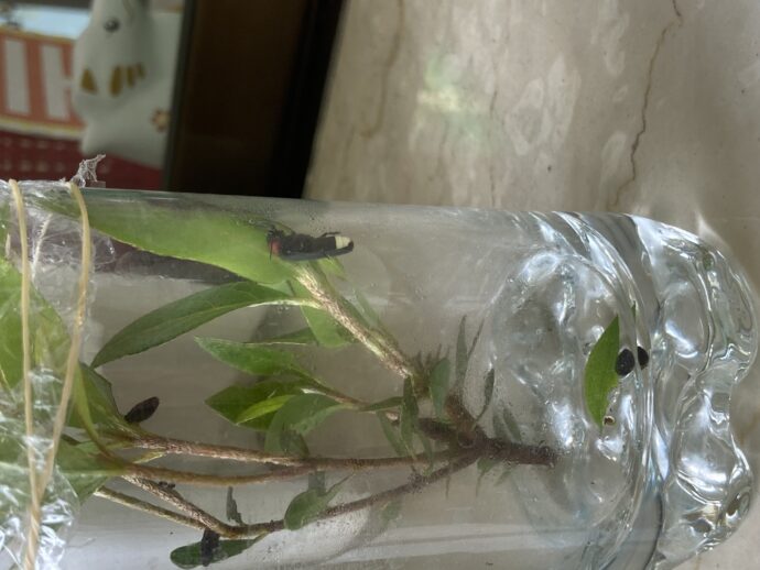 せっかくなので、コップに木の枝と水を少しいれて、こちらでお世話させていただくことになりました!