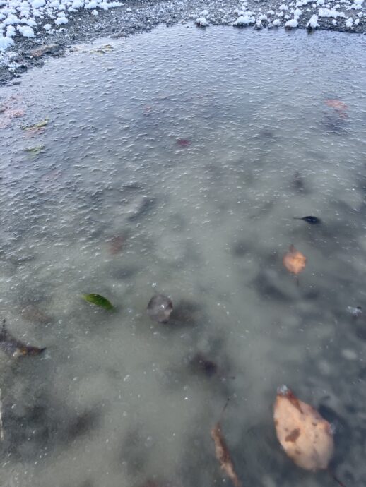 ラ・パス前のグランドゴルフ場の水たまりも凍っていました・・・