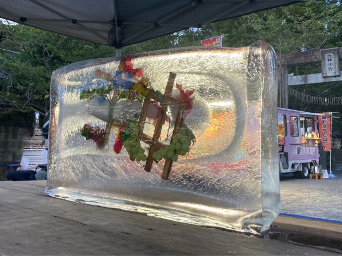カチコチの氷柱! お客さんや出展者の方々が涼を求めて集まってきていました。