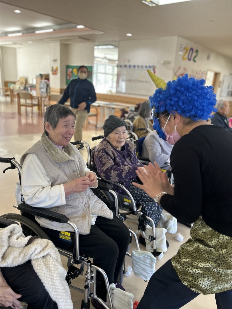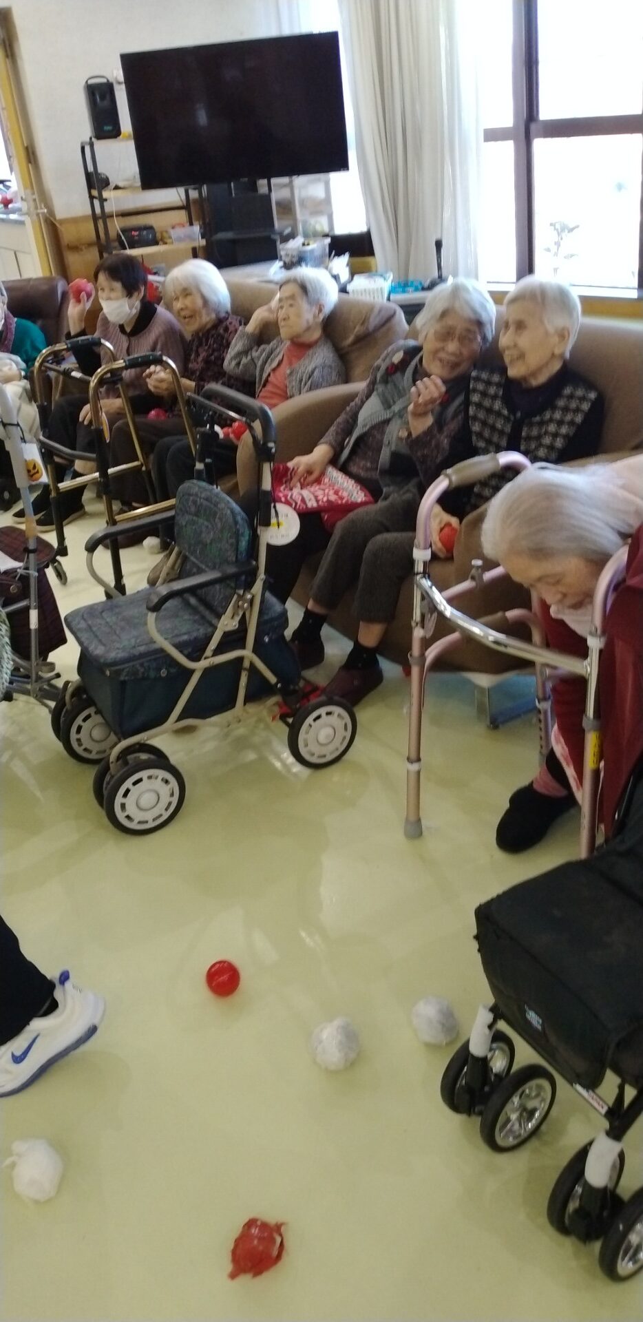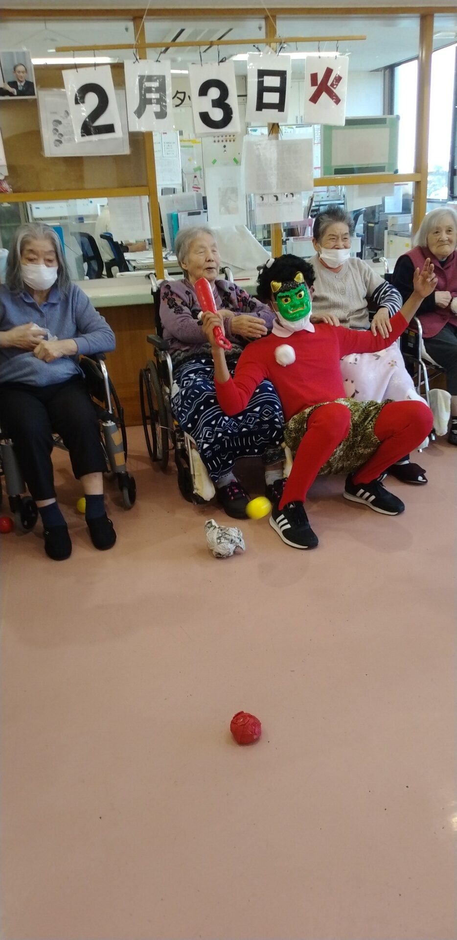 #介護老人保健施設ラパス では3日、鬼退治をしました!節分に合わせて、鬼が来園。入所者の皆様でお手玉をぶつけて、見事撃退に成功しました。季節の行事は皆様とても喜ばれます。今年も一年、元気に過ごせますように!