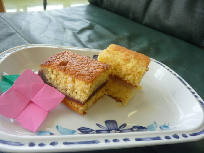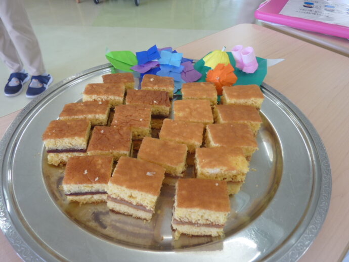 5月17日(水)、3階でおやつ会を実施しました。 今回のおやつ会では「シベリア」をご提供。 シベリアとは、あんこやようかんをカステラではさんだお菓子です。