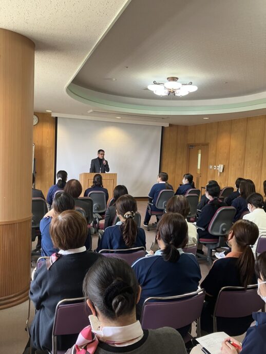 続いて理事長・田熊から職員へ訓示が行われました。先月アメリカの野球殿堂に入ることが決まったイチロー氏の「1票足りないというのはすごくよかったと思う。いろいろなことが足りない、人って。それを自分なりに自分なりの完璧を追い求めて進んでいくのが人生だと思う」というコメントを紹介しました。