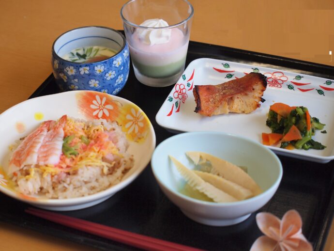 3月はももの節句。ラ・パスの3月の行事食は、このお節句にちなんだ「ひな祭り膳」をご用意いたしました。