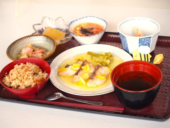 こんにちは!ラ・パス事務所 柳です。 4月24日、ラ・パスでは4月の行事食を利用者様にお召し上がりいただきました。 今月のテーマは「春」です。