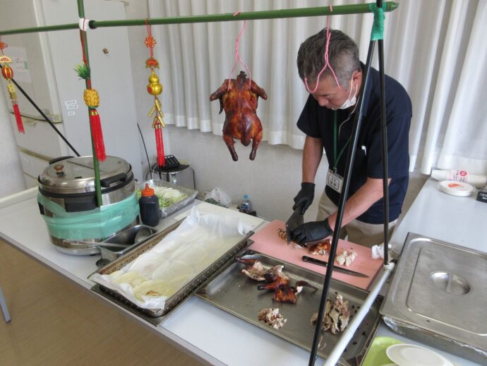 今回、アヒルに抵抗がある方もいると思い、チキンで代用。3日間かけてチキンを仕込んで、いざ本番!