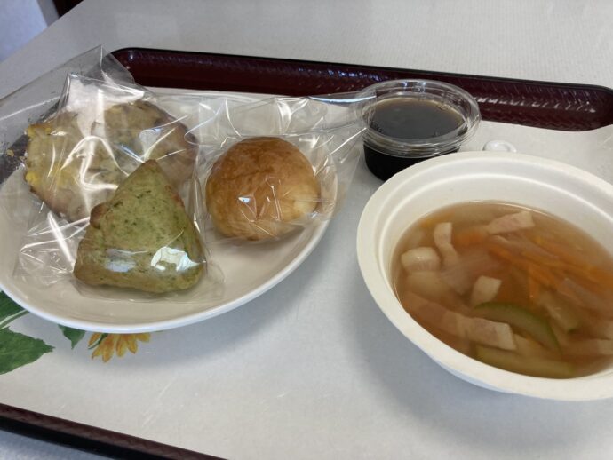 7月25日に実施されたほっと一息の日は「ラ・パス 夏のパン祭り」。たくさんの手づくりパンから2つ、シフォンケーキを1つ、さらにスープとゼリーまでいただきました。