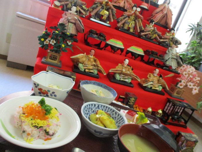 昼食には、ひなまつりのお膳を召し上がっていただきました。