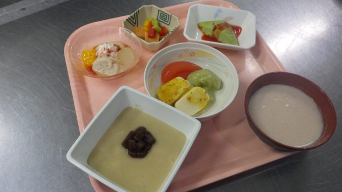 【ミキサー食】食材をミキサーにかけていますが、普通食に近い見た目に仕上げています。