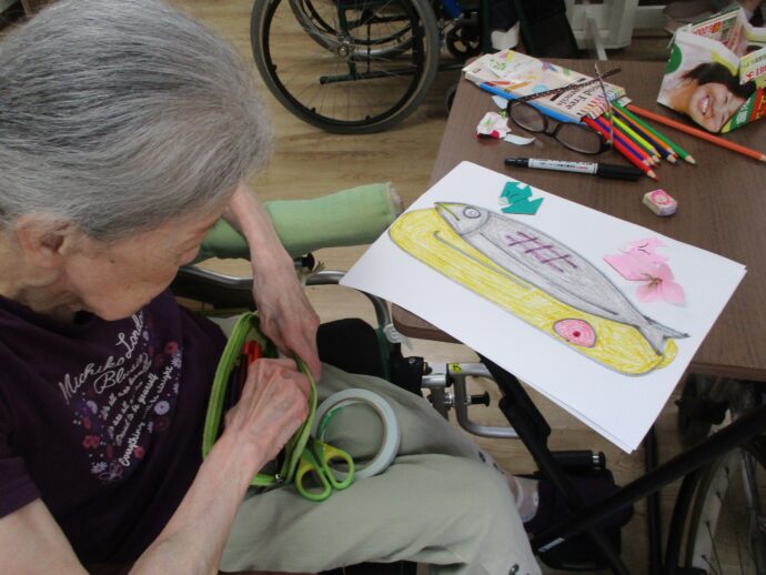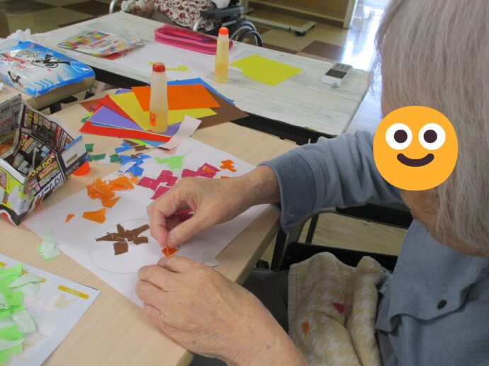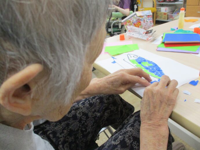 今日は、グループ活動で貼り絵をしました。