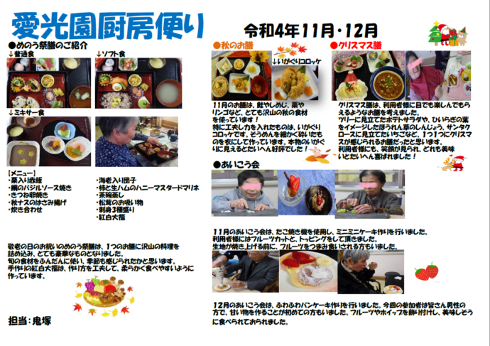 11月12月の厨房便りは、厨房鬼塚が担当して作成しました。